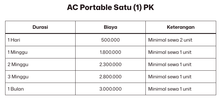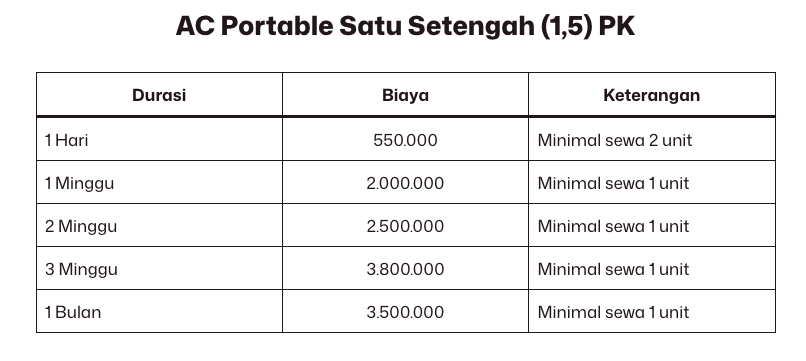 Berapa harga sewa AC portable di Jakarta?