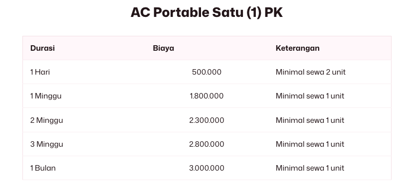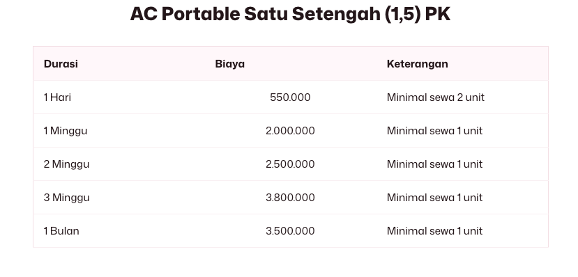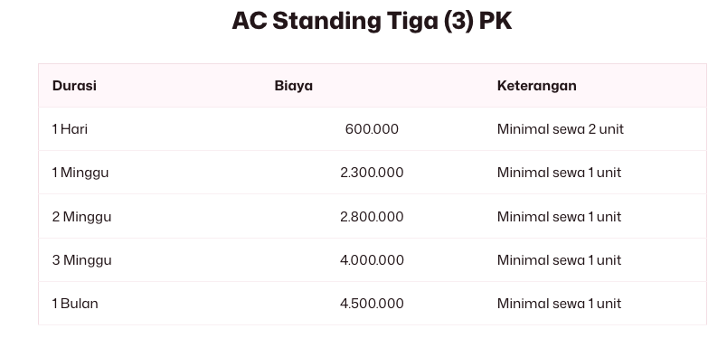 Sahabat AC menyediakan berbagai pilihan paket sewa yang dapat disesuaikan dengan kebutuhan acara.